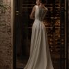 Das Kleid lässt sich ideal mit schlichten Accessoires, einer Hochsteckfrisur und funkelndem Ohrschmuck kombinieren – so entsteht ein ausdrucksstarker, femininer Look für den großen Tag.