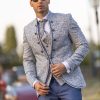Besonders auffällig ist der Stehkragen des Sakkos mit Knopfleiste, der diesem Look eine edle, fast königliche Note verleiht. Gleichzeitig bleibt die moderne Passform erhalten, sodass der Anzug trotz auffälliger Musterung schlank und elegant wirkt. Ideal ist dieser Hochzeitsanzug für Bräutigame mit kreativem oder künstlerischem Hintergrund, extravagante Hochzeiten im Freien oder Destination Weddings mit mediterranem Flair.