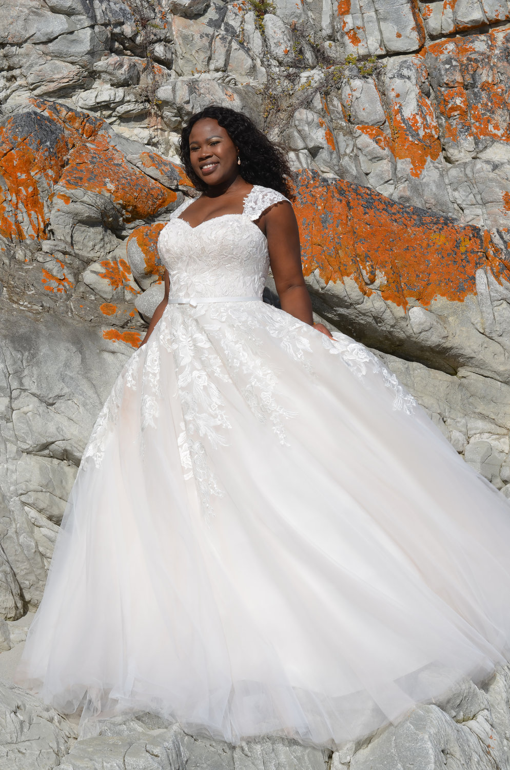 Ein Brautkleid, das moderne Romantik und zeitlose Eleganz perfekt kombiniert – und speziell für Curvy Bräute gemacht wurde.