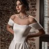 Dieses A-Linien-Brautkleid ist die ideale Wahl für stilbewusste Bräute, die einen modernen und zugleich eleganten Look für das Standesamt oder eine freie Trauung suchen. Der Mix aus klassischer Schnittführung, luxuriösem Satin und raffinierten Details macht dieses Kleid zu einem absoluten Hingucker.
