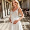 Elegantes Umstandsbrautkleid mit floralem Spitzenoberteil und fließendem Rock – ideal für schwangere Bräute, die auf Komfort und Stil nicht verzichten möchten.